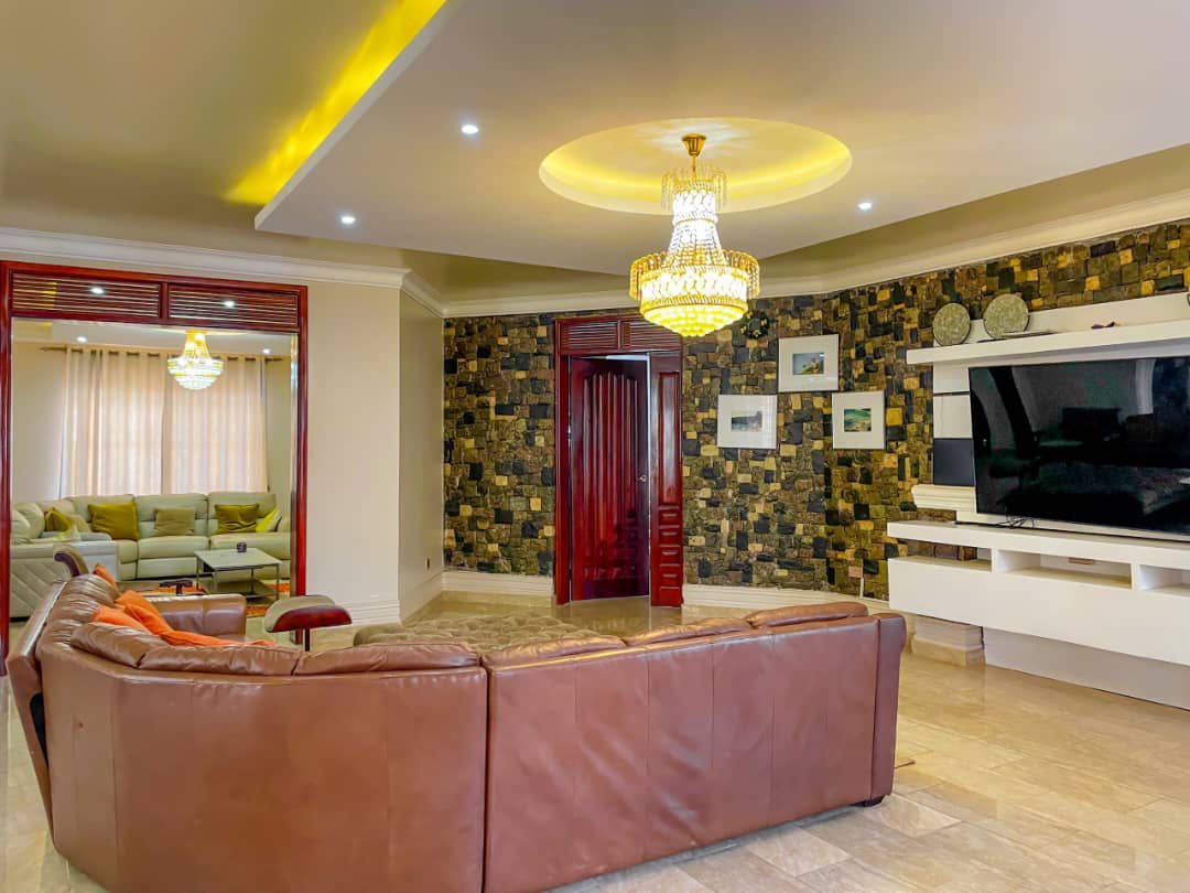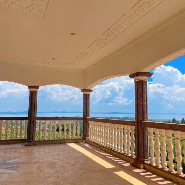 Flat house for Sale at Bwebajja Entebbe Road lake View having 6 bedrooms, sitting, and dining, kitchen, 2 garages and swimming pool seated on 40 decimals and private mailo land title